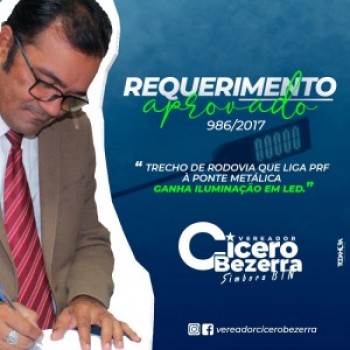A sugestão foi apresentada por meio de requerimento do vereador Cícero Bezerra de Andrade (PP), durante a sessão da Câmara de Vereadores, aprovada em 21/08/2017. Bezerra observa que no trajeto entre a Polícia Rodoviária Federal (PRF) e a Ponte metálica D. Pedro II, urge a necessidade desse serviço de infraestrutura, devido a inexistência de iluminação naquele trajeto, em cuja extensão por incrível que pareça, existem postes instalados, porém não há iluminação.