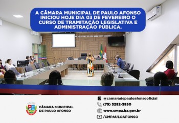 A Câmara Municipal de Paulo Afonso iniciou hoje dia 03 de Fevereiro o curso de Tramitação Legislativa e Administração Pública.