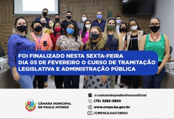 Foi finalizado nesta sexta-feira dia 05 de fevereiro o curso de Tramitação Legislativa e Administração Pública, onde foi ministrado pela Ma. Maria Gorette Moreira e pelo Esp. Marciel Pereira Theodorio.