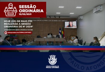 Hoje 10 de maio, foi realizada a Sessão Ordinária de nº 2024ª.