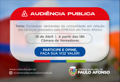 Tema: Esclarecer demandas da comunidade em relação aos serviços prestados pela EMBASA em Paulo Afonso.