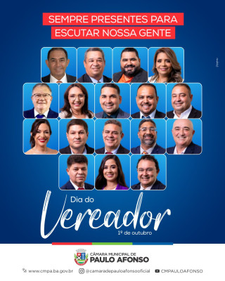 - 24/12/25A Câmara Municipal de Vereadores de Paulo Afonso deseja a todos os cidadãos e cidadãs um Natal de paz, união e esperança.