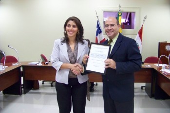 O vereador Edson Oliveira solicitou a dispensa das formalidades para aprovação de moção de aplausos nº 039/2012 de sua autoria a delegada Herundina Nunes Goes Neta e Lima pelos trabalhos prestados a comunidade com sua competência e comprometimento. A Dra. Herundina Nunes esteve no plenário onde recebeu a moção das mãos de vereador e os cumprimentos dos demais edis. Em seguida, agradeceu a homenagem.