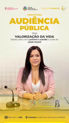 - 26/09/25 Vereadora Evinha promove audiência pública sobre prevenção ao suicídio em Paulo Afonso