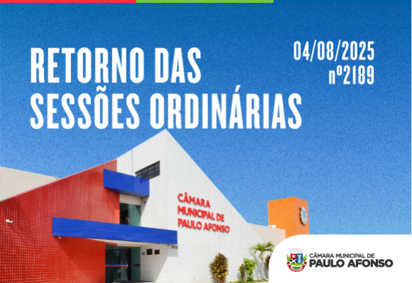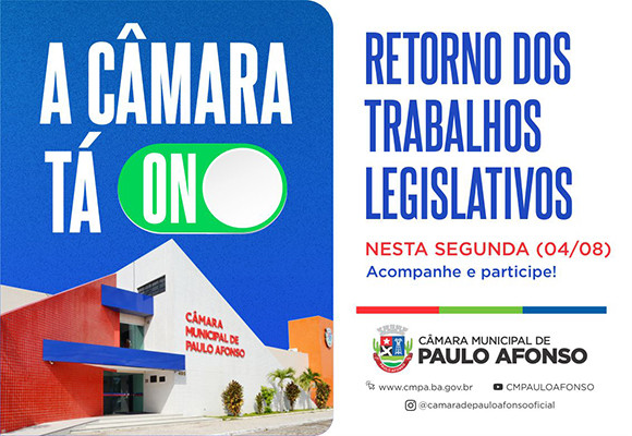 04/08/25Retorno do Recesso Parlamentar da Câmara Municipal de Paulo Afonso.