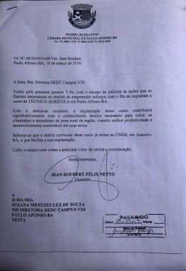 31/03/19Jean Roubert solicita implantação de curso Técnico Agrícola para PA