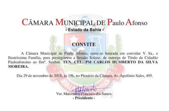 28/11/18Comandante do 20º BPM de Paulo Afonso é homenageado com Título de Cidadão Pauloafonsino