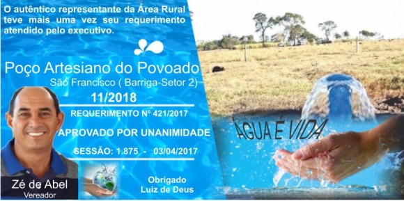28/11/18Executivo atende requerimento de Zé de Abel para perfuração de poço artesiano no Povoado São Francisco
