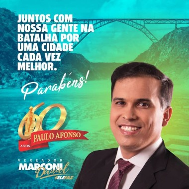 17/07/18Presidente da CMPA, Marcondes Francisco parabeniza Paulo Afonso pelo 60º aniversário de Emancipação Política
