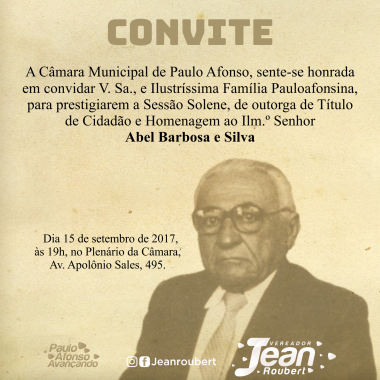 19/09/17CMPA, outorga o Título de Cidadão Pauloafonsino ao Ilm.º Senhor Frederico Rodrigues Nogueira Filho, na segunda-feira 25/9