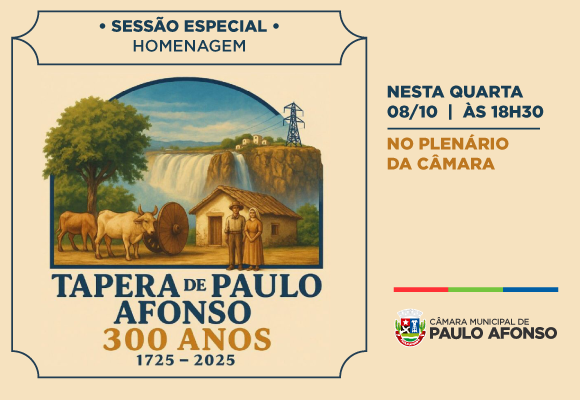 07/10/25Sessão Especial 08/10, em Homenagem aos 300 anos da Tapera de Paulo Afonso